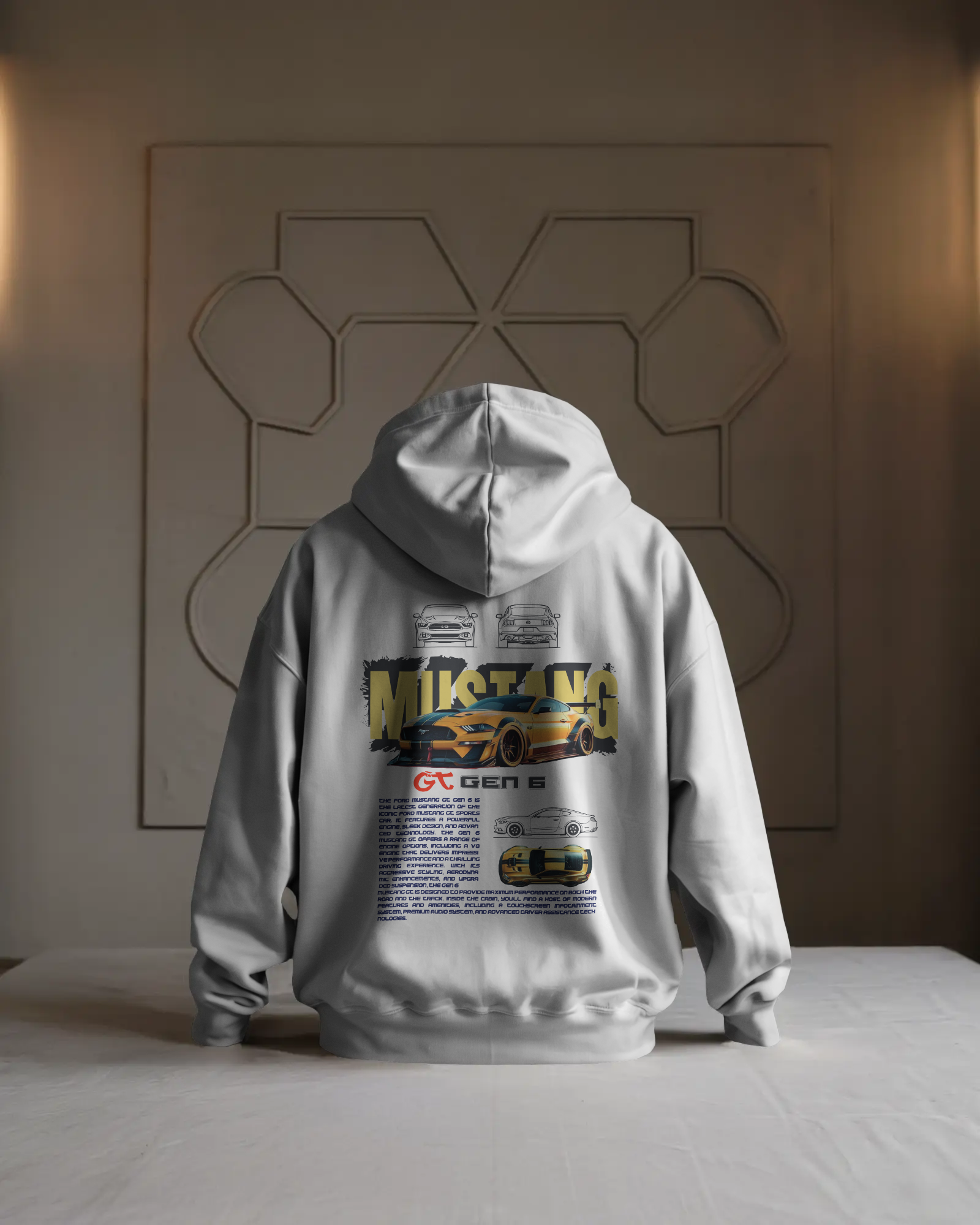 The GT LEGACY // GEN 6 MUSTANG HOODIE crafted from 300 gsm premium fabric(100% cotton), it offers exceptional durability and warmth without compromising on comfort. Its dense material ensures long-lasting wear and a refined, structured fit, making it ideal for both casual and elevated streetwear looks. Designed for those who value quality and style, this hoodie delivers superior insulation while maintaining breathability, perfect for year-round use.